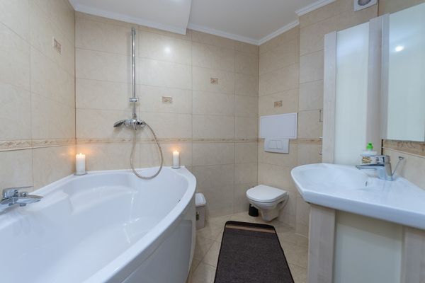 В квартире есть спальня с двуспальной кроватью, ортопедическим матрасом, телевизор с плоским экраном, большой раскладной двуспальный диван, а также полностью оборудованная современная кухня с микроволновой печью, холодильником, духовкой и плитой, посуда, санузел с ванной, стиральной машиной. Охраняемая территория возле дома, паркинг, детская площадка. В доме охрана, видеонаблюдение. Перед приездом гостей мы проводим обязательную уборку с дезинфекцией.