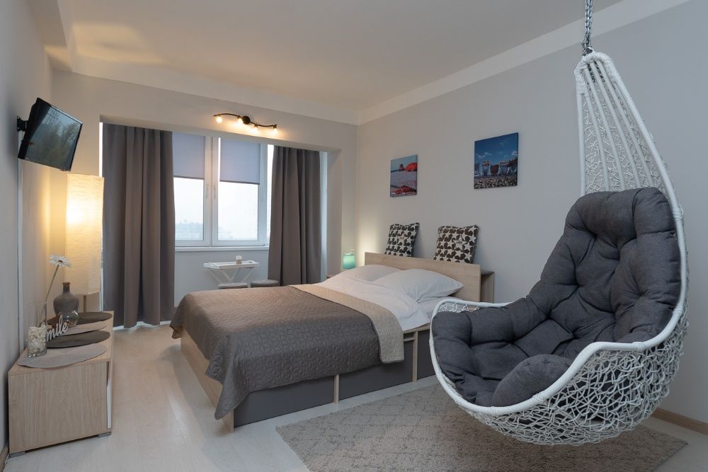 Новая дорогая мебель и авторский декор, кровать с ортопедическим матрасом, белая постель и полотенца, подвесное кресло-качель, лаунж освещение, плазма, Wi-Fi. Стильная кухня, укомплектована всем необходимым, кондиционер и бойлер, большая душевая кабина и стильные аксессуары в ванной. Окна во двор.